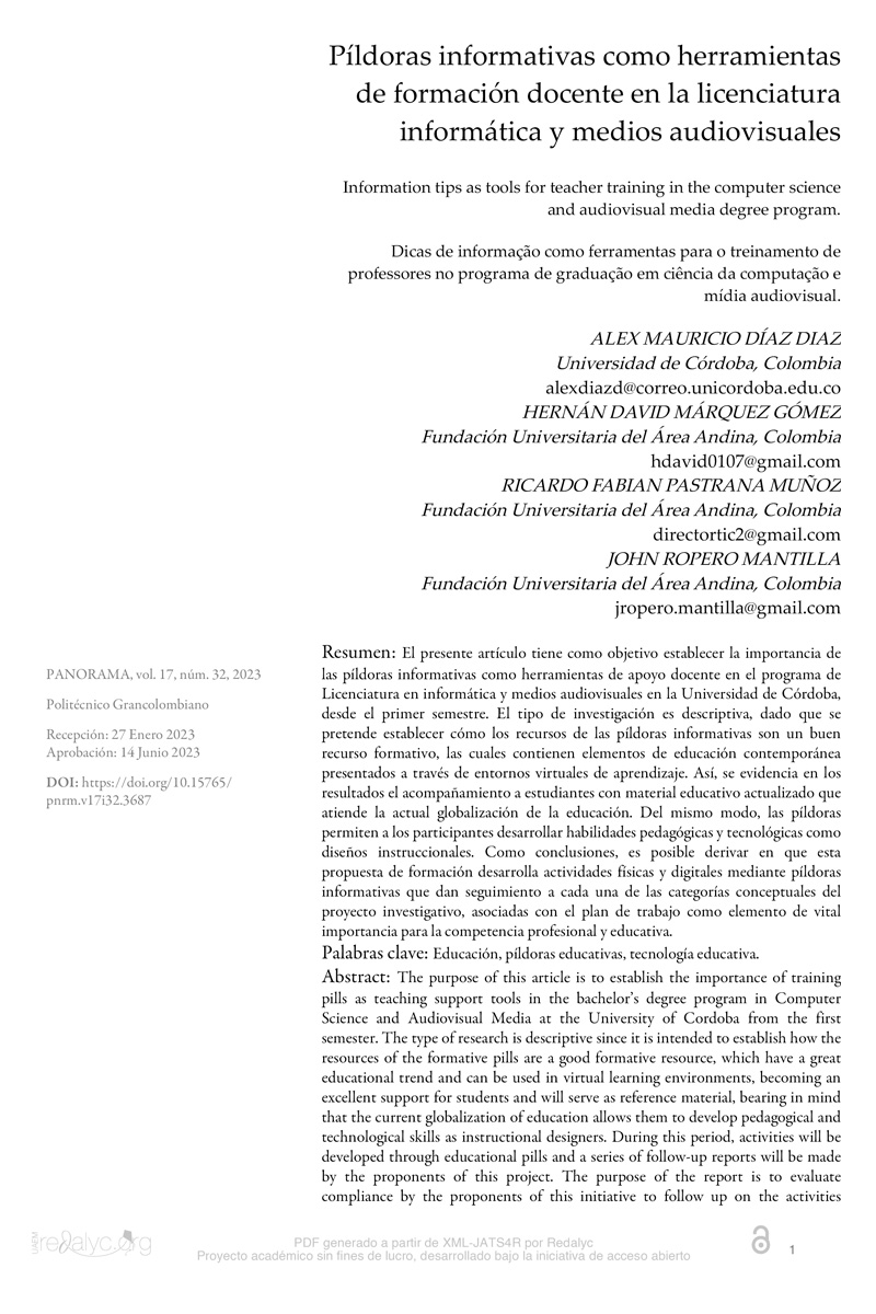> Colección: Ciencias de la Comunicación Píldoras informativas como herramientas de formación docente en la licenciatura informática y medios audiovisuales Autor: Díaz Diaz, A. M., Márquez Gómez, H. D., Pastrana … Leer más