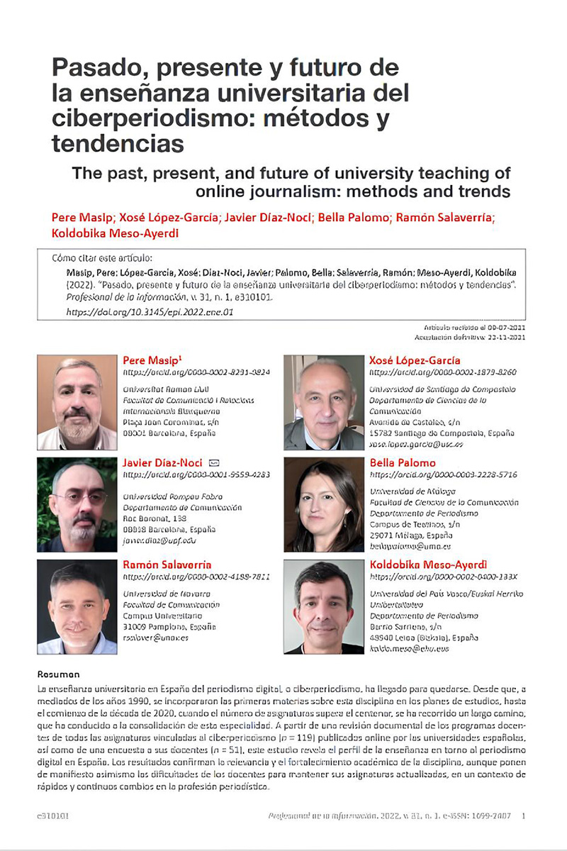 > Colección: Ciencias de la Comunicación Pasado, presente y futuro de la enseñanza universitaria del ciberperiodismo: métodos y tendencias. Autor: Masip, P., López-García, X., Díaz-Noci, J., Palomo, B., Salaverría, R., … Leer más