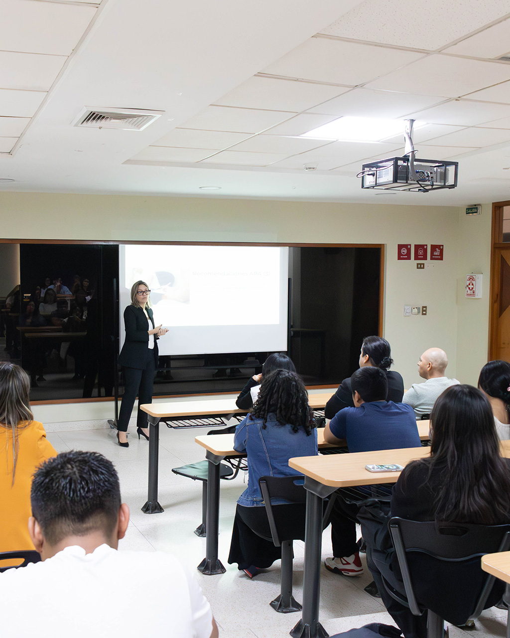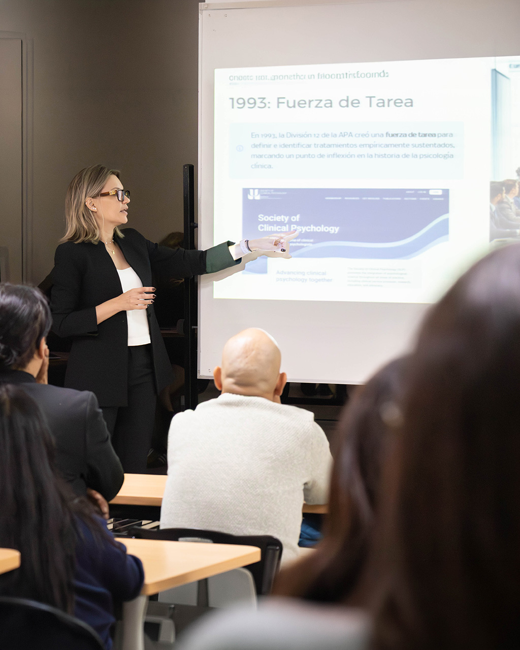 Como parte de su agenda en la facultad, la reconocida investigadora ofreció la ponencia “La práctica basada en evidencias: la ciencia en conexión con la práctica”, dirigida a estudiantes de Psicología. La actividad permitió reflexionar sobre la integración entre la investigación científica y el ejercicio profesional, aportando herramientas actuales para una formación universitaria de excelencia.